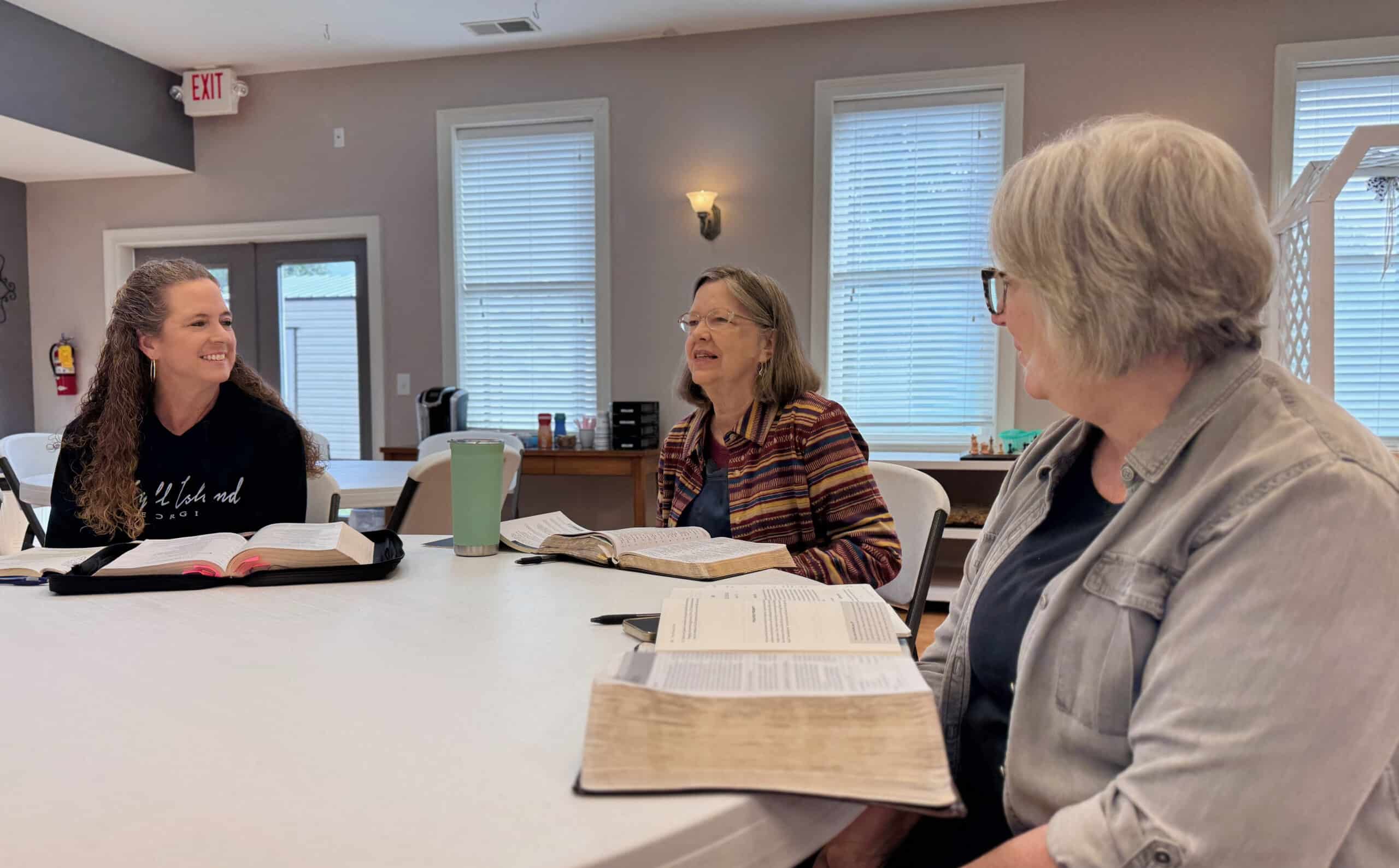 Currently, our study (in parallel with the men’s study) is on the book of 1 Peter – begun in March ’26. The study meets weekly in the couch room, next to the sanctuary; it runs for about an hour and 15 minutes, and is discussion-oriented in nature. Come join us – we’d love to have you!