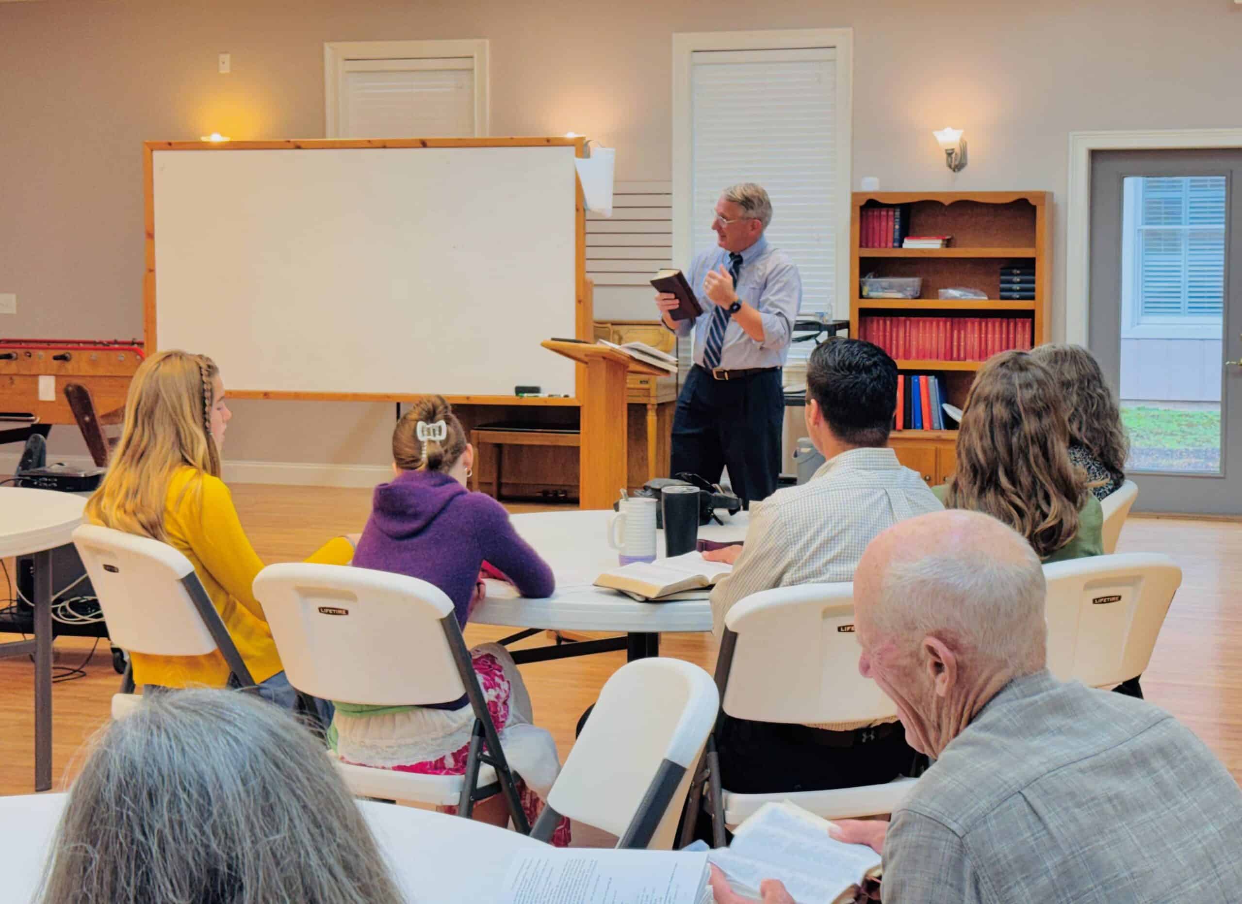 Currently, our study is on the book of James - begun in October '25. The study meets weekly in the couch room, next to the sanctuary; it runs for about an hour and 15 minutes, and is discussion-oriented in nature. Come join us - we'd love to have you! For more information, contact the pastor...